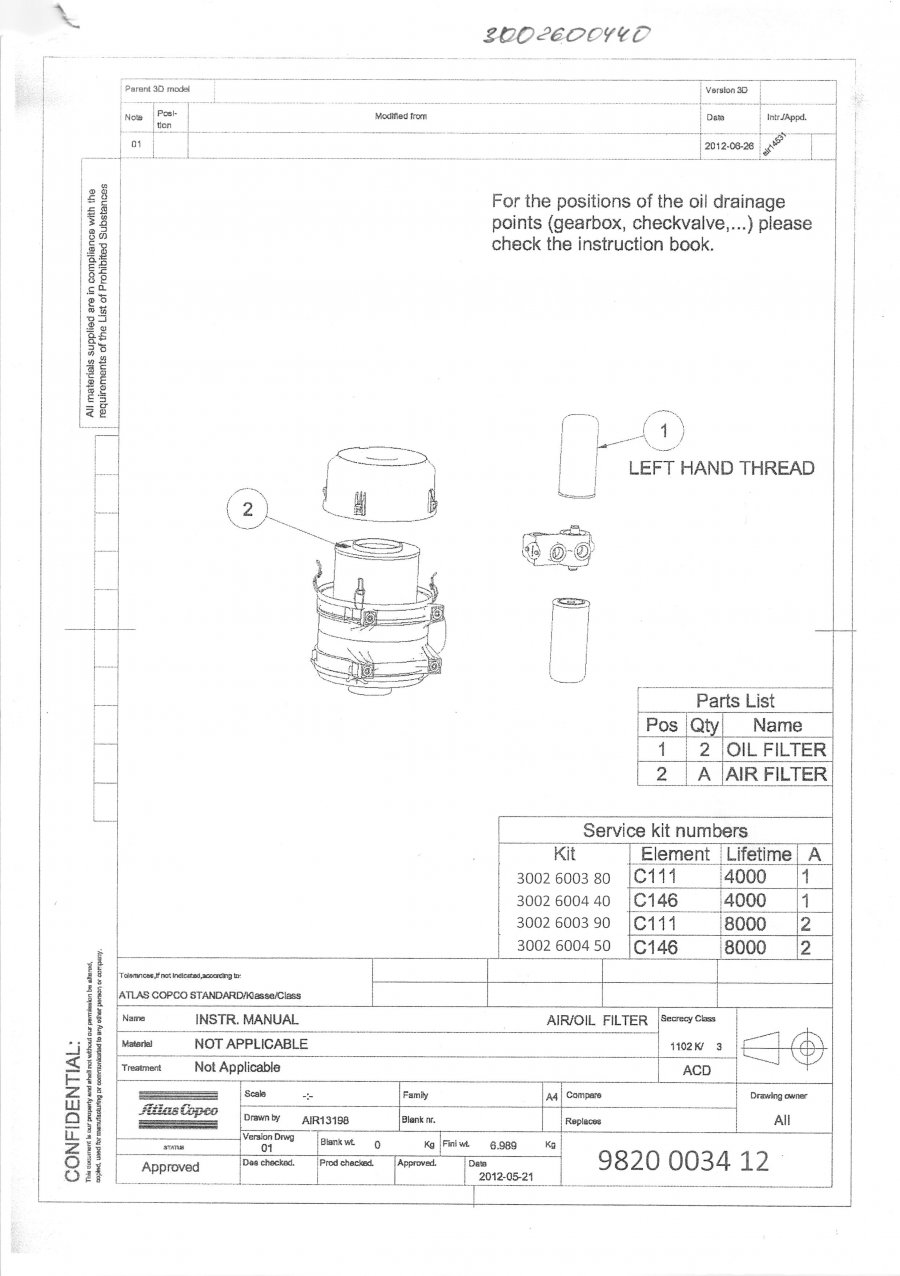 GA90VSDFF Air-Oil Filter Kits (Набор масляного и воздушного фильтра), Original