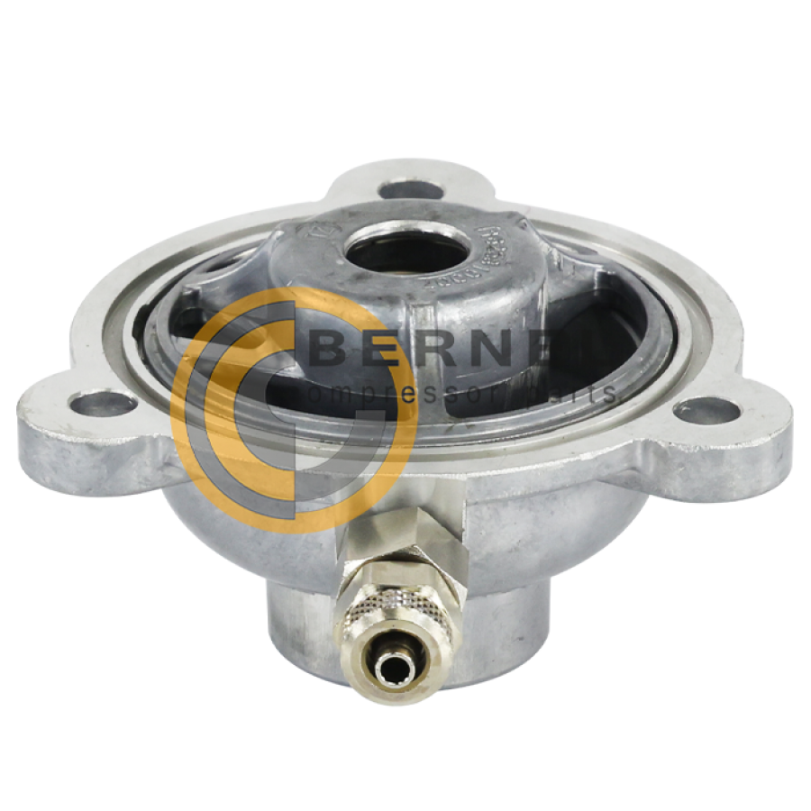 Впускной (разгрузочный) клапан отвечает за производительность винтового компрессора. Он регулирует количество воздуха, который всасывается устройством. Клапан открывает и закрывает впуск воздуха.