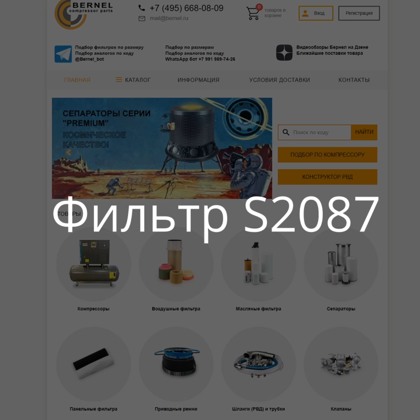 Сепаратор S2087 является аналогом таких фильтров как MS671, S138D0252, MSB1083S, KOS008720, DFN17025000, DB2087, 98262194, 9493025024, 4930255811, 4930253301 и используется для проведения ТО на следующих моделях компрессоров .